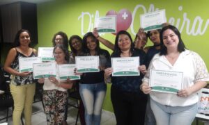 Alunos exibem certificado de curso de cuidador de idoso, que já está sendo oferecido on-line