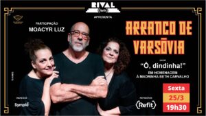 25/3, sexta-feira, às 19h30, única apresentação do grupo ‘Arranco de Varsóvia’ em homenagem a madrinha Beth Carvalho – Teatro Rival Refit – Rua Álvaro Alvim , 33 – Subsolo. Ingressos entre R$ 35,00 e R$ 70,00. Telefone: 2240-4469. Capacidade: 350 lugares