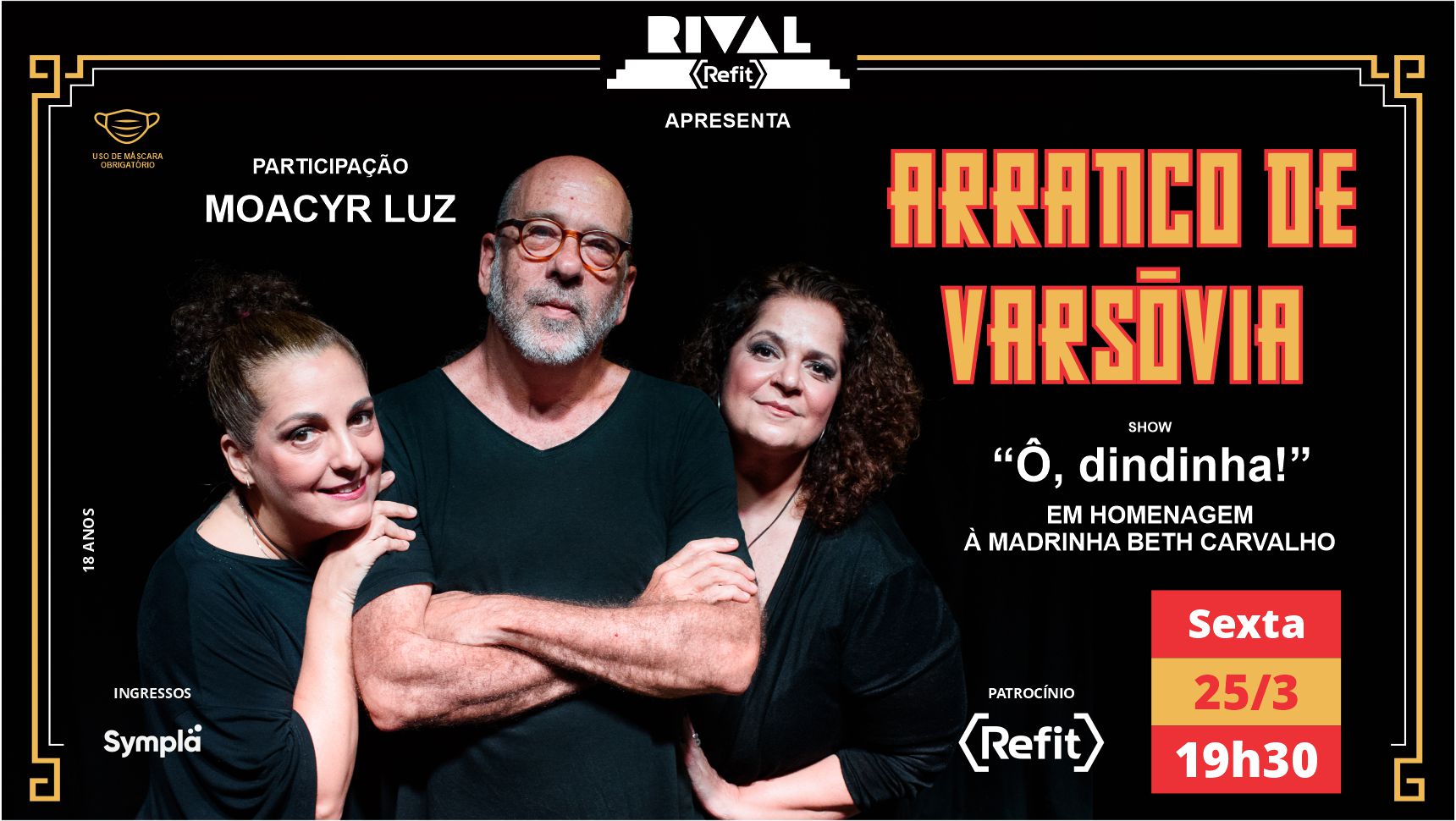 O Arranco de Varsóvia vai comemorar 25 anos de carreira com o show “Ô, dindinha!” no palco do Teatro Rival Refit. Hoje formado por Andréa Dutra, Cacala Carvalho e Paulo Malagutti Pauleira, o grupo vai homenagear a saudosa Beth Carvalho, que participou do primeiro CD do grupo, lançado em 1997. Ela cantou na faixa “O Arranco de Varsóvia”, música de Paulo Malaguti Pauleira, e se tornou madrinha do grupo.